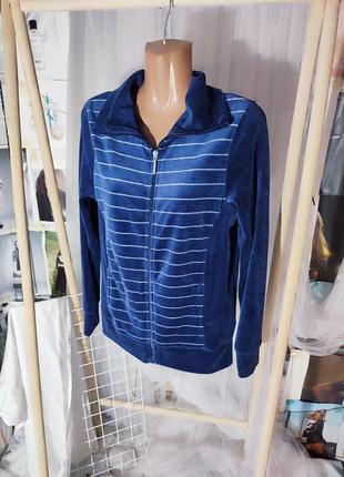 Синяя, махровая кофта от немецкого бренда Esmara Свободный крой, манжеты на рукавах и подоле изделия, высокий воротник, два наклонных боковых кармана, с переда в полоску, присущая волокно люрекса 80% хлопок, 20% полиэстер Размеры XS/S 32/34 При необходимости могу предоставить дополнительные замеры и фото Цена фиксированная торг не уместен Укр пошта-оплата на карту Новая почта-возможен налажный платежных по предоплате 100 грн