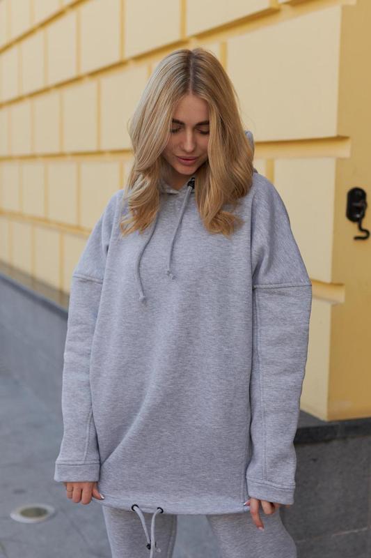 Женские худи, серое, оверсайз, со шнурками на капюшоне и снизу худи