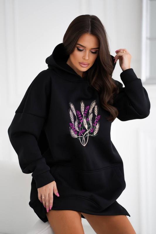 Худи oversize арт. emax. 7537 Размер: S-M (42-44), L-XL (46-48) Ткань: трикотаж трехнитка на флисе Капюшон. Удлиненный худи свободного кроя на флисе. Мягкая ткань, приятная к телу. Перед декорировано контрастной вышивкой. Спущенный рукав. Боковые карманы. Машинная вышивка. Цвет: черный, молочный 💰Цена: 800 грн