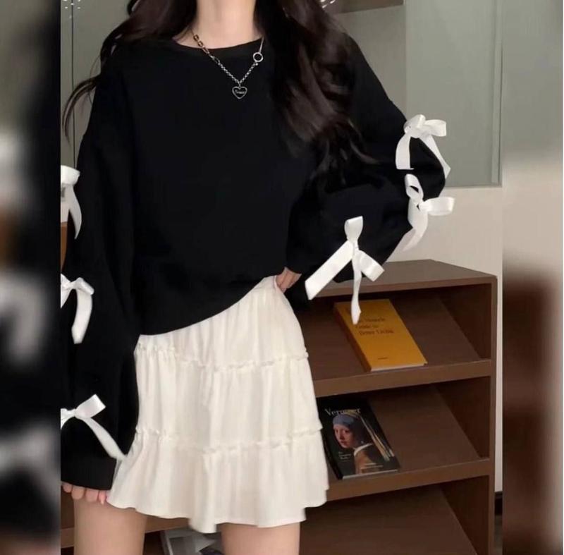 🥀Новинка🥀Wow🤩 Трендовый батник с бантиками на рукавах. Тепленький на флисе. В свободном оверсайз стиле. Код 193 Ткань: Трехнит на флисе Размер: 42-46 универсал Цвета: черный, серый.