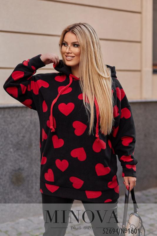 Черно-красное худи в принт "сердечки", больших размеров от 50 до 64