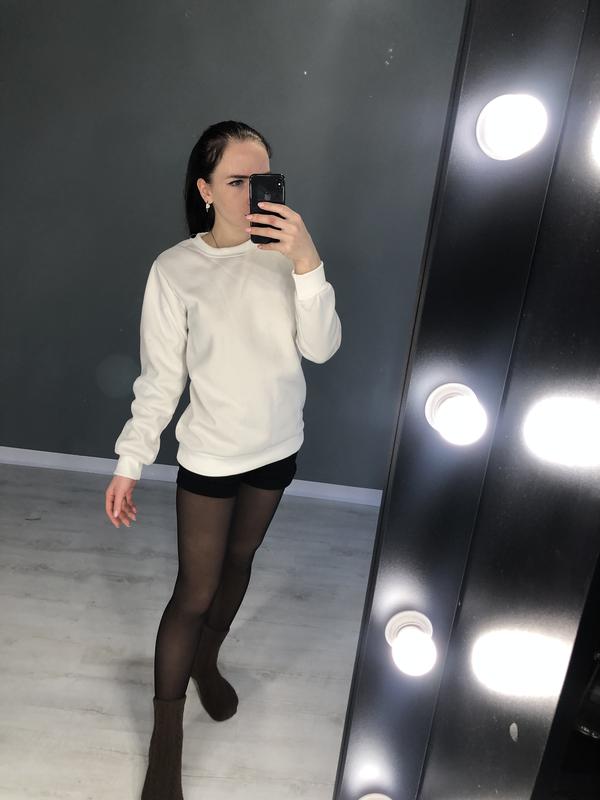Свитшот утеплен на меху. Белого цвета. С мега утепленным на зиму