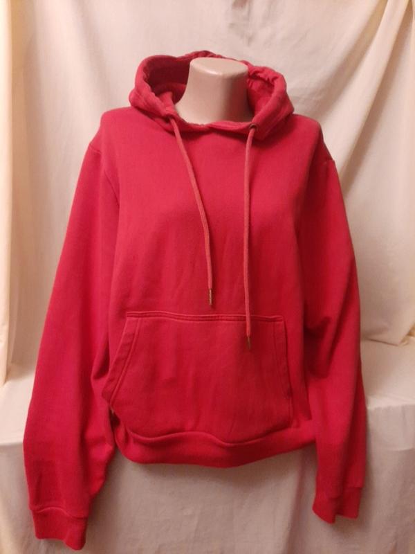 Красная толстовка с карманом и капюшоном на стяжке, теплая, размер L: ПОГ - 59, рукав -63, плечи- 48, длина - 62, ПОБ - 54+резинка манжет до 60см тянется, глабокий капюшон - 37/24 на стяжке