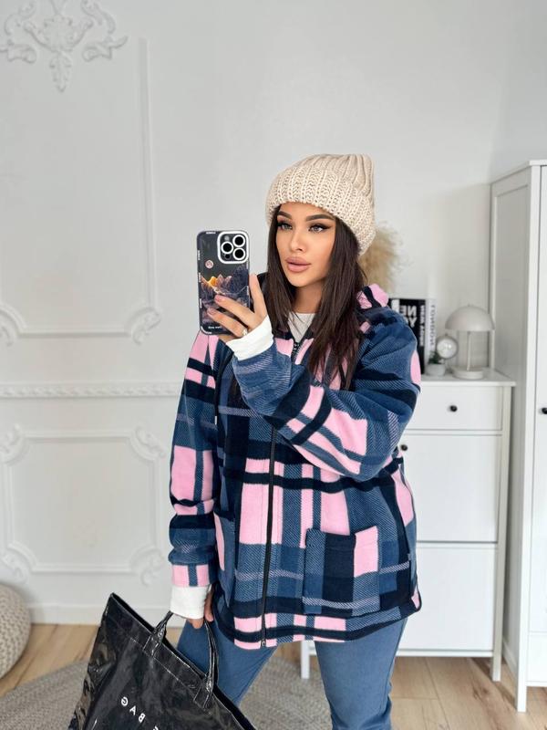Ткань флис полар принт (производство Турция) Цвет розовый, карамель, сине-розовый Размер 48-50,52-54,56-58 Кардиган на молнии, с капюшоном и накладными карманами. Рукав на манжеті. хар