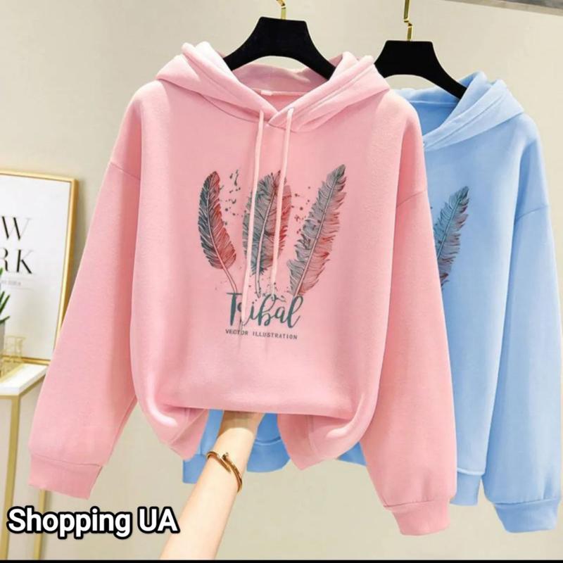 Женская модная толстовка с капюшоном и с великолепным принтом (перья ). сезон: осень зима весна размер: xl плечи 49 длина рукава 54 обхват груди 108 длина вещи 65 цвет: розовый