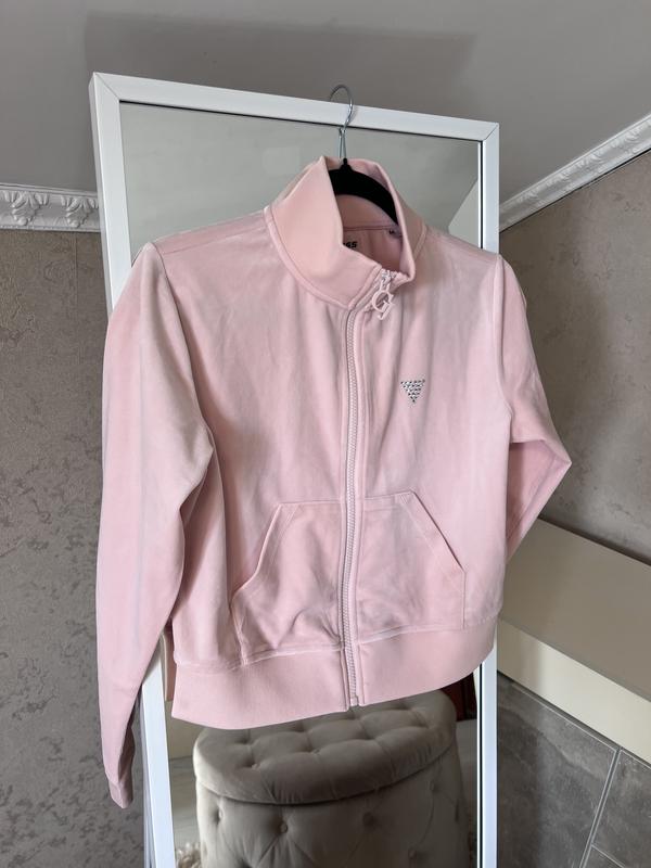 Кофта з колекції Guess виготовлена з велюрового трикотажу. Модель з м'якої та приємної на дотик тканини. - Простий фасон, що не стискує рухів. - Піднятий комір забезпечує додатковий захист від холоду. - Застібається на блискавку. - довгий рукав. - Дві накладні бічні кишені. - Рукави та нижній край оброблені гумкою для захисту від несприятливих погодних умов. - Тонкий, еластичний трикотаж. - Струменева модель. - Довжина рукава: 65 см. - Довжина: 48 см. - Ширина під пахвами півохват : 48 см. -Поечі: 40 см - Параметри вказані для розміру:M