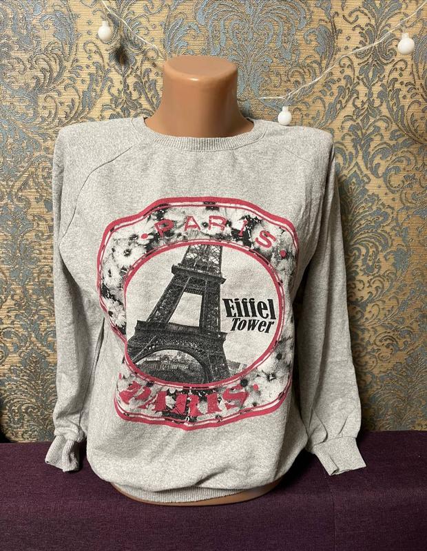 Толстовка с рисунком эйфелевая башня, в хорошем состоянии, ткань хлопок Размер S/M Замеры Длина 57 Пог 49