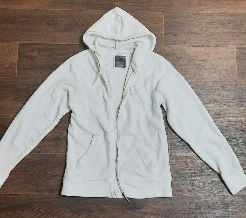 Белая флисовая кофта в хорошем состоянии, размер М. Замеры: ОГ - 96 см, длина 65 см, длина рукава - 67 см