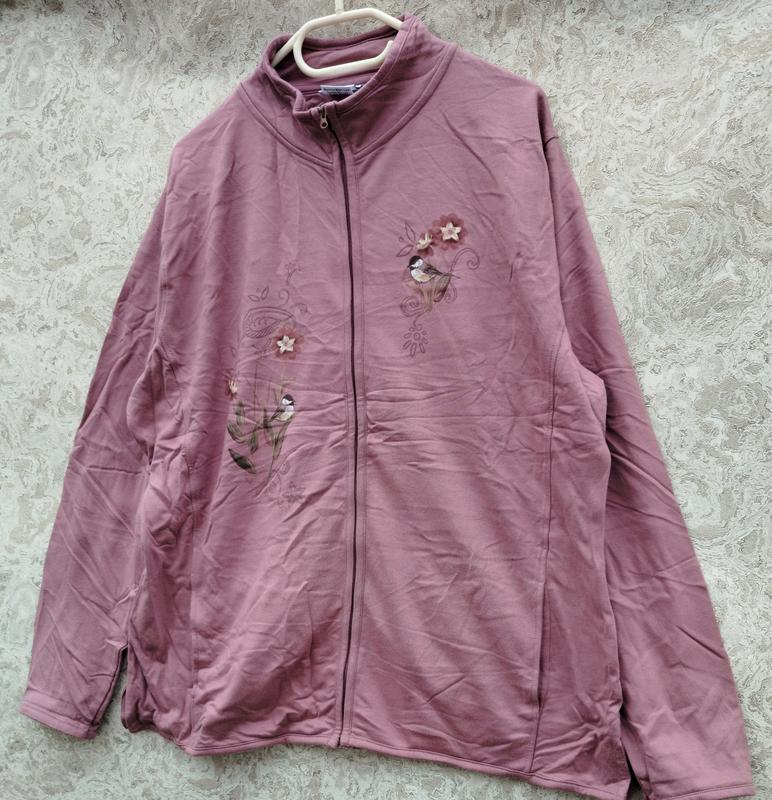 Секенд Америка примята с мешка длинна от шеи к низу 72см длинна рукава от шеи к низу 81см ширина от подмышки до подмышки 64см талия 58см низ 63см цвет светло фиолет,лиловый???фото искажает) ткань трёх нить средней плотности обмена и возврата нет!