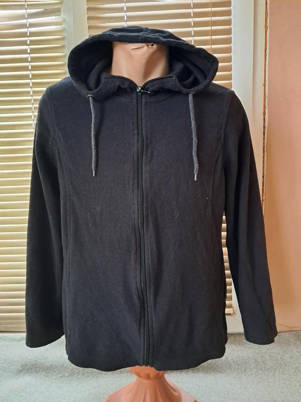 Флисовая кофта на молнии с карманами и капюшоном, размер L плечи 42, грудь 58, бедра 60, длина 62, рукав 60