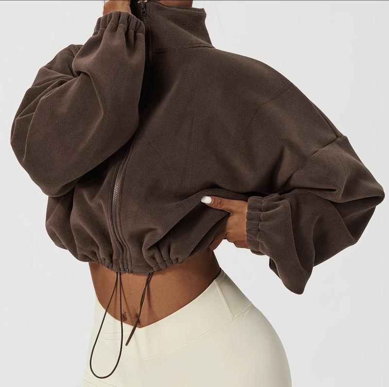 Нова вкорочена флісова кофта оверсайз на замку в трендовому шоколадному кольорі Розмір від М до XL Довжина від плеча 47см Пог 65см Плече спущене ,рукав від шиї 78см Ворот 7,5см По низу 64см,регулюється на менший розмір за допомогою резинки стяжки