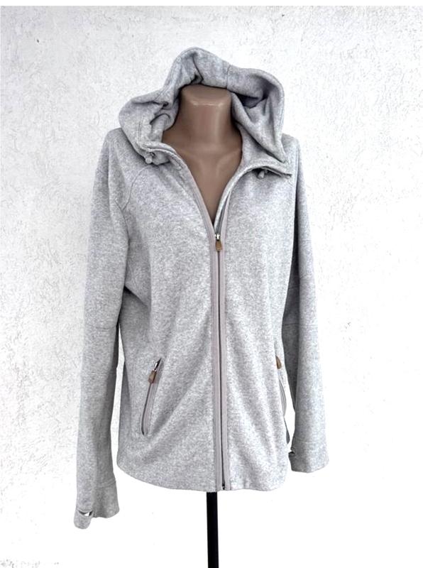 Кофта флісова тонка сіра м l оверсайз з капюшоном на затяжках тонка з кишенями отвір для п...