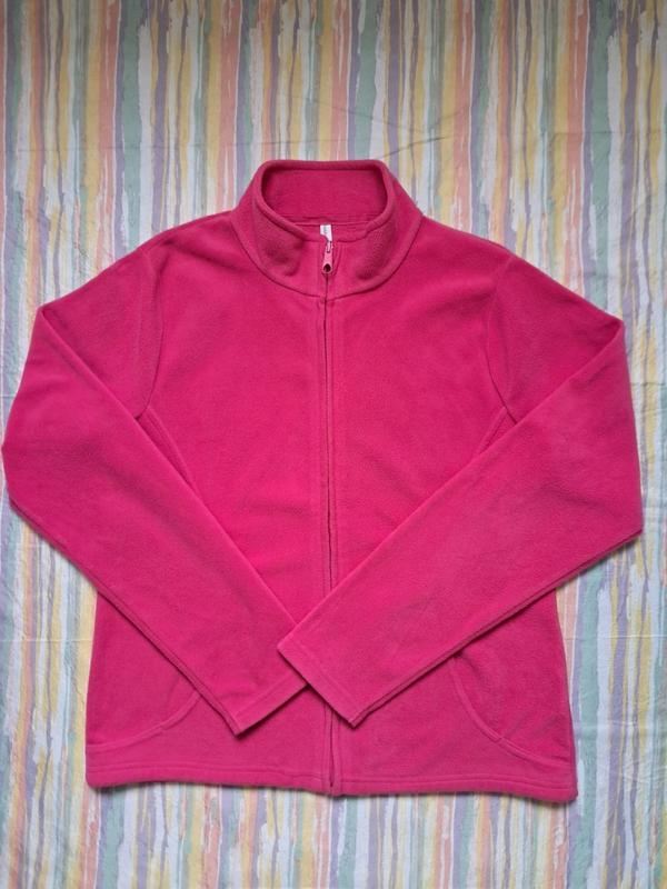 Marks&Spencer женская флиска/кофта с карманами.Размер L.Полуобхват в груди 52 см, длина 60 см, длина рукава от плеча 63 см.На полном замке.Стан очень хорош.Без дефектов или недостатков