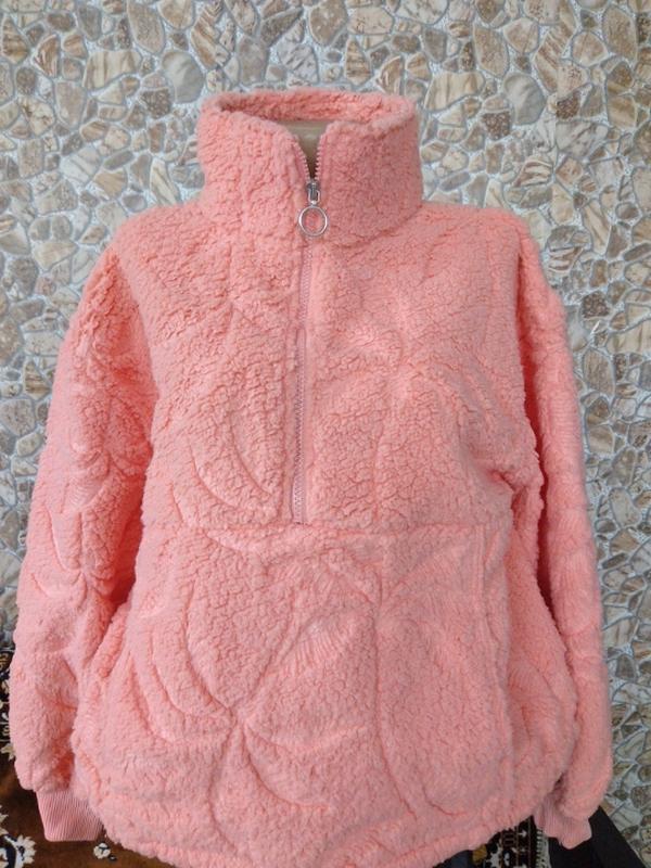 Новая кофта,Тедди, персикового цвета, на молнии, внизу стягивается на шнуровке,плечи 56 см,грудь 55 см, по низу стягивается,рукав от горловины 70см,длина 58см,