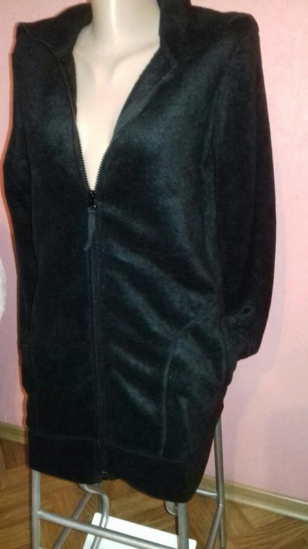 Мягкая, тёплая флисовая кофта, с высокой горловиной, цвет чёрный. Состояние отличное, дефектов нет. Замеры -длинна 77см, плечи 39-40, рукава 64см. По груди 106см, бедра 110 см. За дополнительной информацией пишите Пересылка только по предоплате или через Безопасная оплата