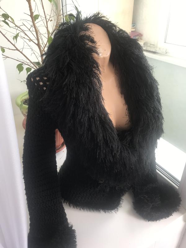 Тёплая,вязаная кофта,выглядит очень нарядно)