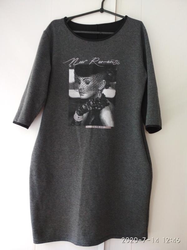 Красивая туника серого цвета с принтом... Хорошо смотрится... Ог96см От86см Об 104см Дл.82см