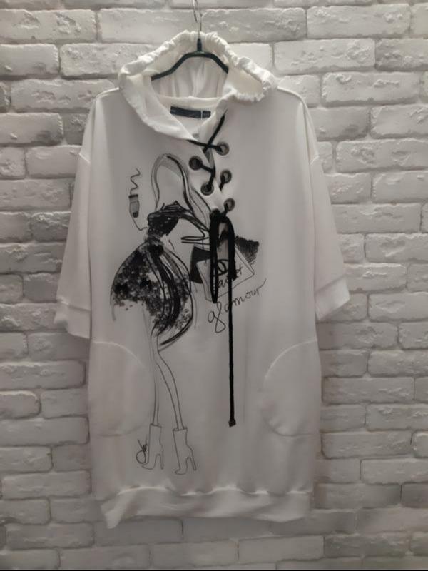 Стильное платье-туника с капюшоном производство Польша. Трикотаж плотный,отличного качества, не светится,не вытягивается. В наличии два размера L иXL. Цвет молочный. Замеры сделаны по верху изделия первый L,в скобках XL. О груди 50 (53 ) О бедер 52 (54) длина рукава от ворота 51 (53) низ резинка не в растянутом виде 45 (46) Длина изделия 84 Заходите на мою страницу,много интересного 💥☝️