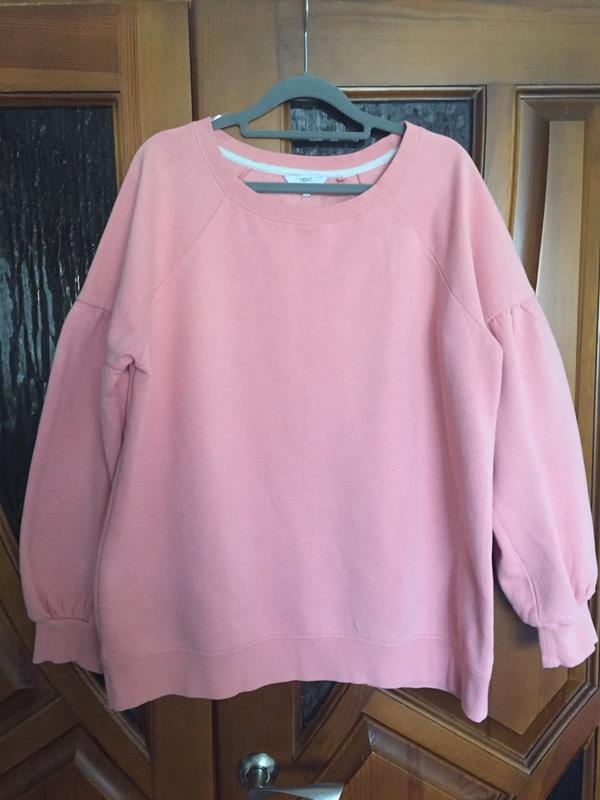 Світшот жіночий Next. Розмір 16 , але може йти на 18-20 Состав70%бавовна, 30%поліестер. Колір персиковий. Заміри:Довжина вид 65см, ПОГ 62cm, дл. рукава 70см.