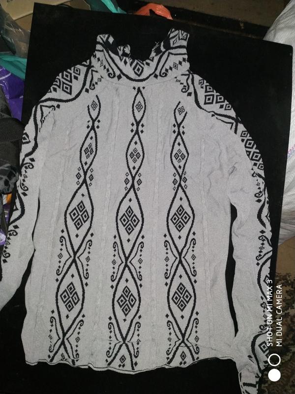 💛💙 минимальный заказ 100 грн. При покупке, добавляйте к цене в оплату за товар 20%, не менее 30 грн-это оплата комиссии "Shafa", в ценах она не заложена! Водолазка, гольф на р.М-Л. Серый с черным узором. Замеры на фото, тянется на 5 см. Вся информация в разделе "Обо мне "