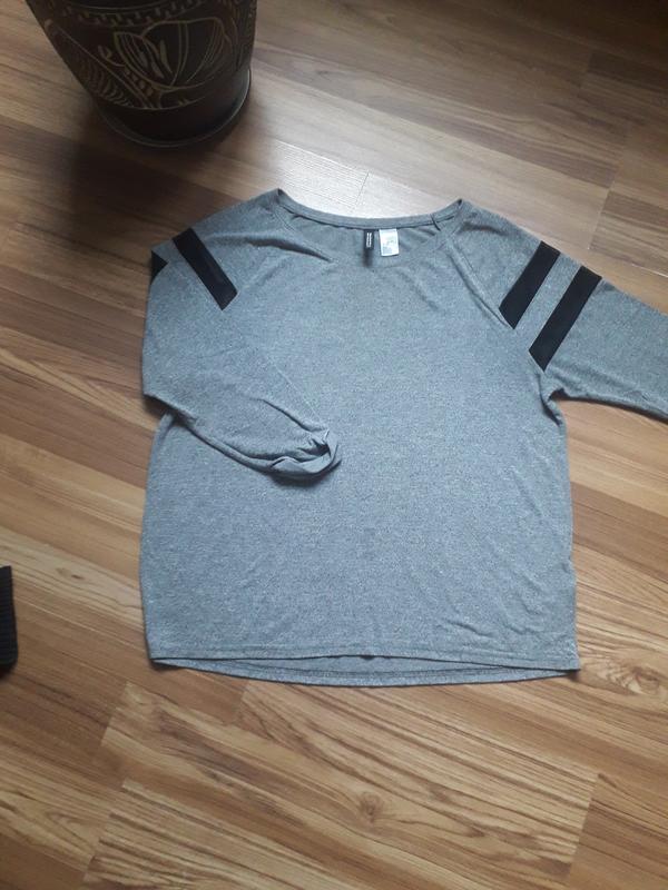 Тоненька сіра кофтинка з рукавом3/4,прикрашена вставками чорного гіпюру