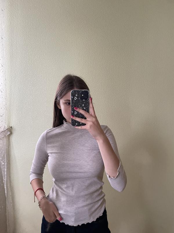 Бежева водолазка з укороченим рукавом,також шия в рюшечку,дуже приємна до тіла