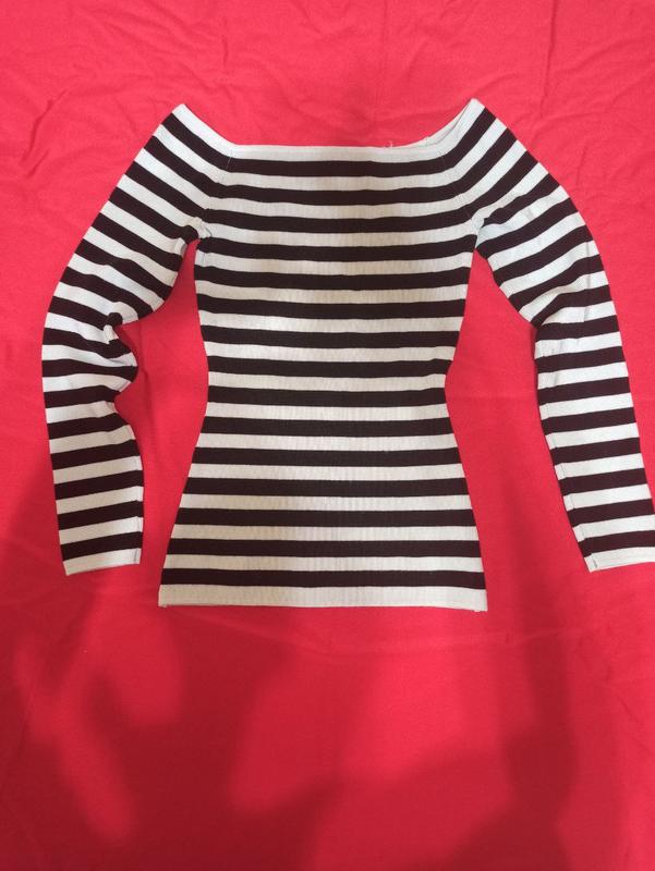 Кофтинка в мілкий рубчик, добре тягнеться , в біло-чорну полоску, стан нового , опускається на плечики , гарно на тілі , розмір XS-S