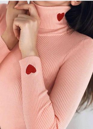 Водолазка із серцем Модель: 6515 Фабричний Китай Розмір: універсальний (42-46) Тканина: трикотаж Кольори: чорний, капучіно, білий, пудра