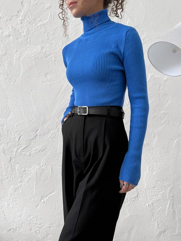 Базовый гольф в рубчик синего цвета. Модель с длинными рукавами и отворотным воротником-стойкой. Собственное производство. Размер M/L