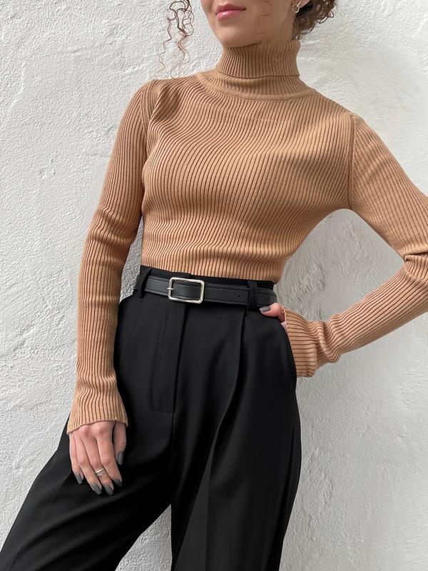 Базовый гольф в рубчик бежевого цвета. Модель с длинными рукавами и отворотным воротником-стойкой. Размер M/L Собственное производство.