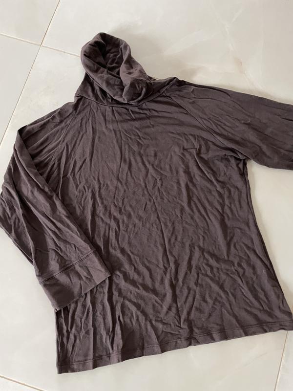 Очень классного качества гольф Красивого шоколадного цвета 3/4 рукав, по длине чуточку ниже линии талии. Размер л, но я бы сказала на М