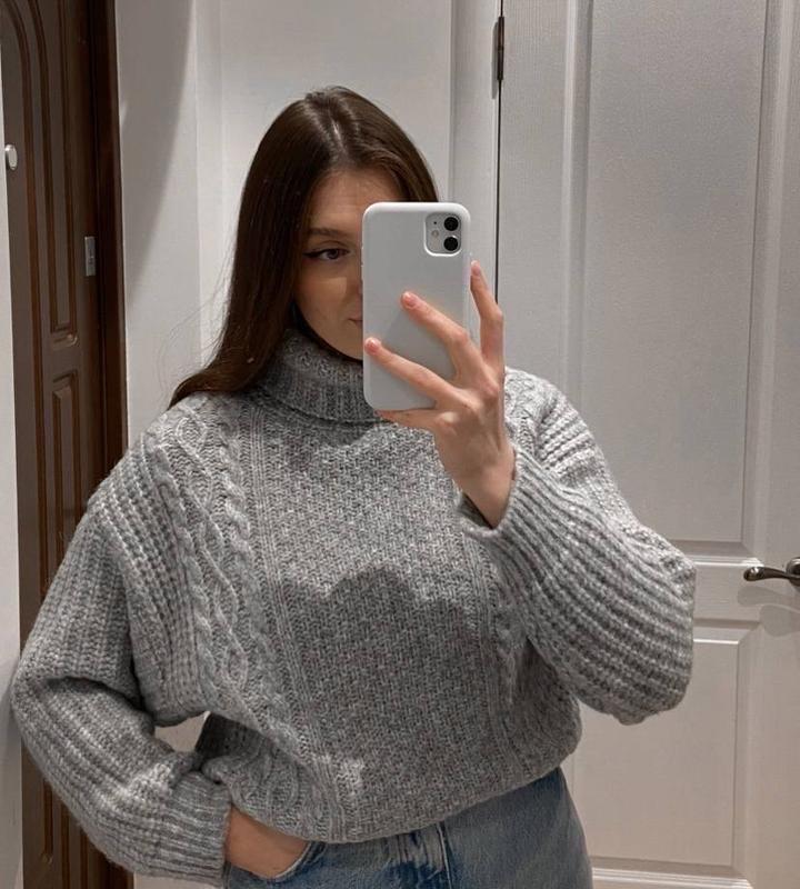 Серый свитер в косы с горловиной От укр бренда favourite style В одном универсальном размере С-Л Состояние очень хорошее 4,5/5 Очень теплый с шерстью Состав: 82% акрил 10% шерсть 8% полиамид