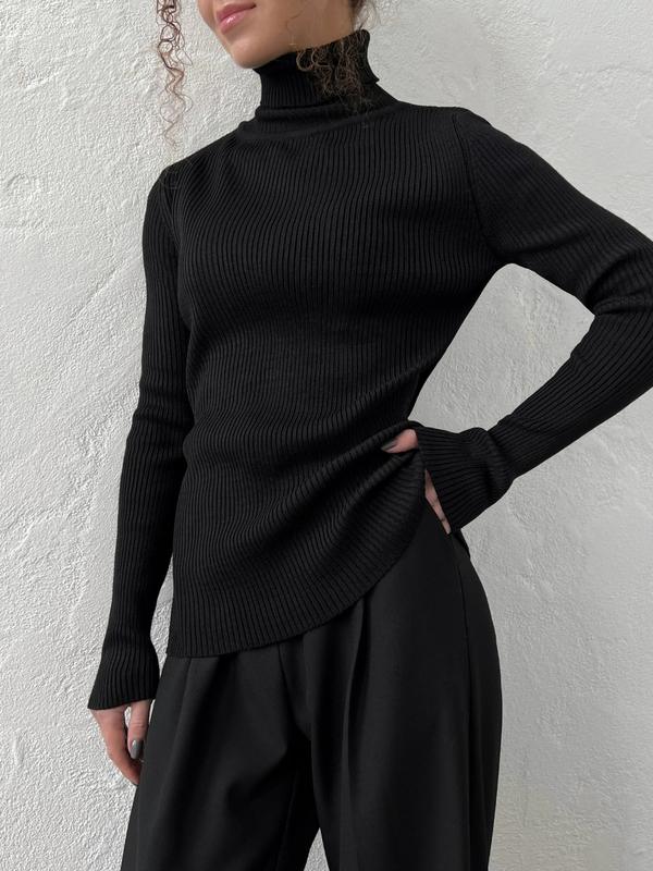 Базовая черная водолазка в рубчик бренда H&M. Плотная, держит форму, в составе 85% вискозы и 15% полиамида. Очень приятная к телу. Размер указан S. Отлично тянется. Плечи - от 36 Пог- от 44 Длина 59 Длина рукава 59
