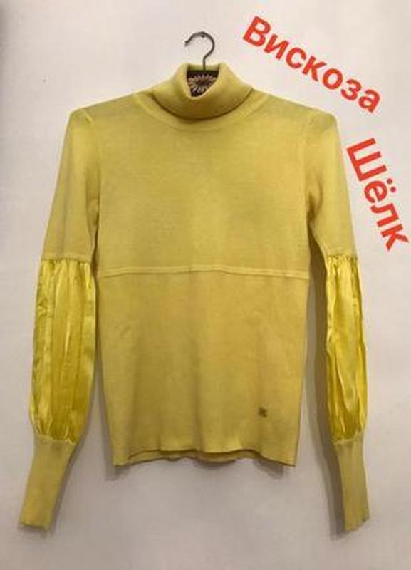 Стильный,качественный свитер-гольф известного бренда с натурального материала. Состояние идеальное, без дефектов. Все бирки есть. Цвет основной чуть исказило. Цвет насыщенный желтый(не активный) Основной цвет материал вискоза,рукава фонарики-шёлк. Размер указан 34,подойдёт и на больше,материал очень хорошо тянется. Длинна от плеча 58 Плечи от 39 Рукав 66(можно регулировать манжетой) Пог 41-61 Пот 38-57 По низу 37-70 Замеры сделаны в спокойном состоянии и в натяжке. Доставка Укрпочта и Нп, безопасной оплаты нет, читайте отзывы покупателей и раздел о продавце.