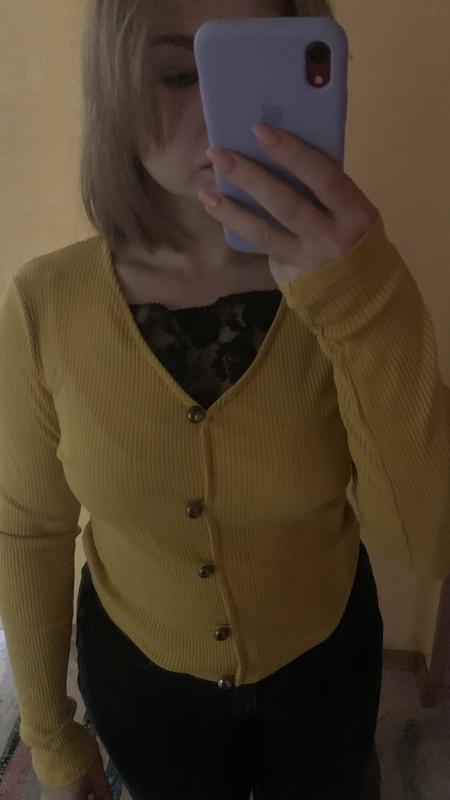 Картинка горчичного кольору, з декоративними ґудзиками