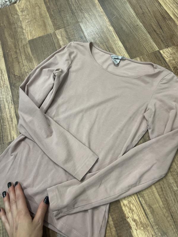 Кофта лонгслів бежрожева тоненька можна просто під одяг одягати на осінь чи зиму Розмір маленький 34/36 Стан ідеальний але потрібно трошки підшити знизу