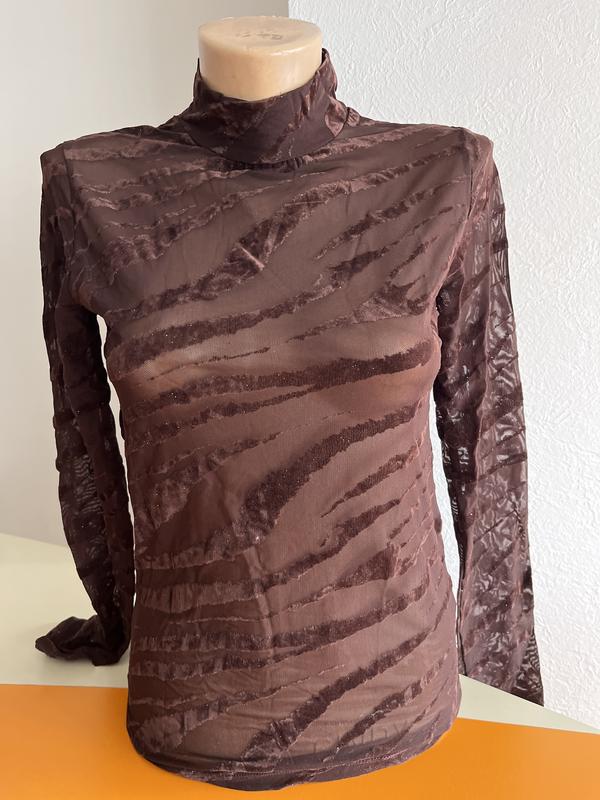 Стильный гольф,материал-сетка с бархатным рисунком,новый,коричневый,Турция,р44-46