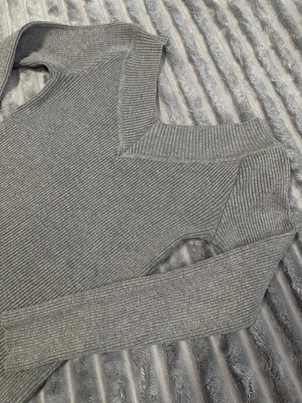 Гольф женский с V вырезом Цвет: серый Замеры: от - 34 см. (тягнеться до 48 см.) ширина низу - 32 см. (тягнеться до 50 см.) длина рукава - 51 см. длина - 53 см. Цена указана с учетом % шкафа