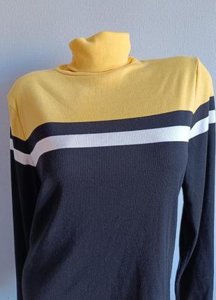 Тонкий гольф 3-х кольоровий склад (віскоза 33%, поліестер - 64%, еластан - 3%), розмір европейський 46, виміри: довжина - 62 см, плечі - 39-40 см, ПОГ - 50 см, тягнеться до 60 см, довжина рукава - 65 см, висота коміра - 15,5 см. ПОВЕРНЕННЯ та ОБМІНУ ТОВАРУ НЕМАЄ!.