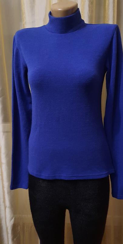Меланжевый/ангоровый гольфик синий. Ворот стойка, спереди короче, а сзади длинней. Размер: 44-48.