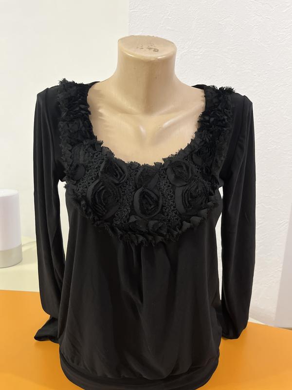 Стильный женский гольф,на манжете,вырез украшен декоративными цветами,черный,новый,р44-46,Турция