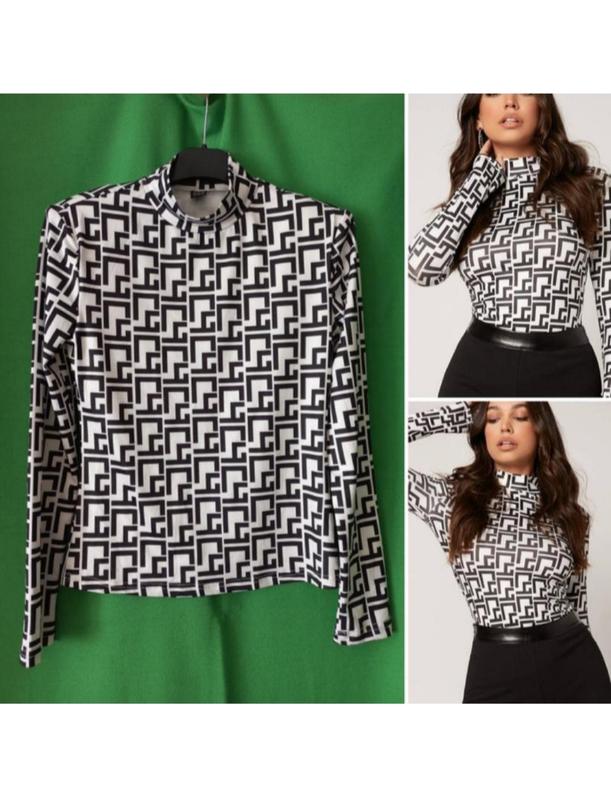 Облегающая водолазка на подплечниках с геометрическим принтом shein.