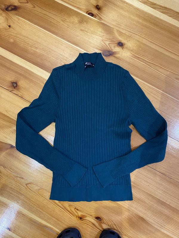 FB Кофта в рубчик с модной горловиной изумрудного цвета Состояние идеальное, состояние новой вещи. Бирка со составом срезанная, ощутимо что ткань натуральный хлопок. Полуобхват груди 35 см, длина 52 см, длина рукава 62 см, хорошо тянется. Подписывайтесь на мой аккаунт, часто забросая обновление стильных брендовых вещей👠🩳👒💐👡🥾👢🧢👜🧥👕👙🧣🎒👔🥿🧤👟👚👖