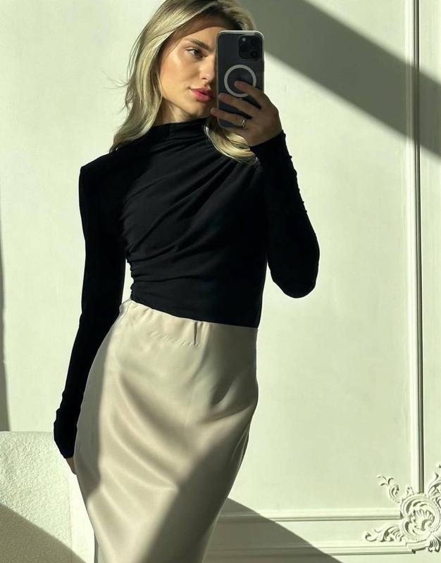 🔥НОВИНКА🔥 Гольф 💰Цена: 520 грн 🖇Мод: 7031 🧶Ткань: вискоза 📐Размер: 42-44, 46-48 🎨Цвет: черный, молоко Спереди идет двойной слой ткани, благодаря чему не просвечивается 🫶
