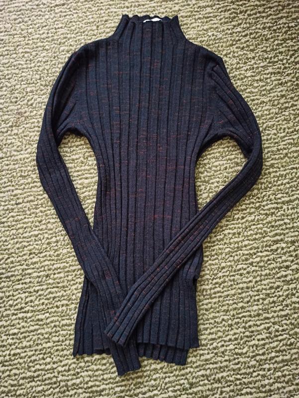 гольф в широким рубчике по бокам имеет разрезы, по бирке указан xs размер, но по факту s, небольшая m, в составе 50% вискозы,чужное качество, состояние идеально