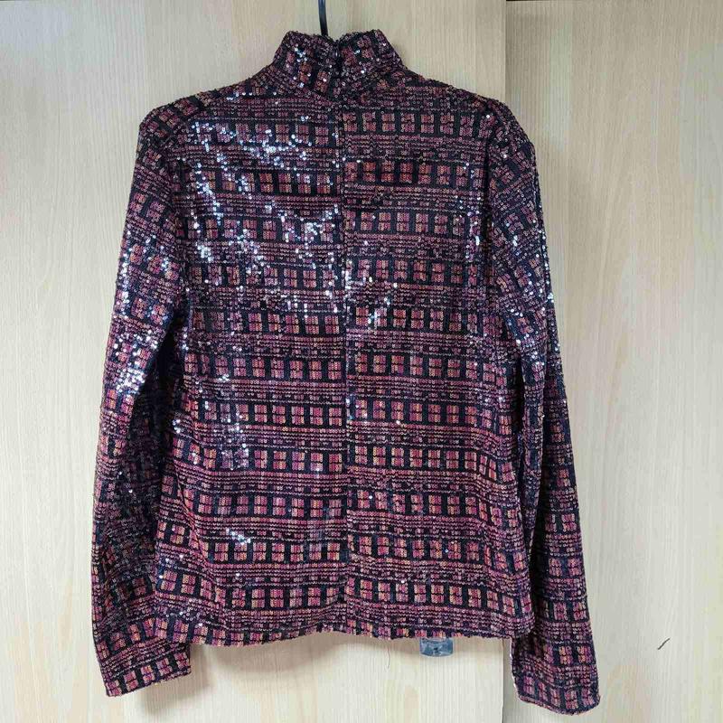 Нарядный гольф, на спине потайная змейка, по длине рукавапо косой четыре крючка, весь вышит пайетками. Цвета чёрный, рыжий, бордовый. Новый, без бумажной этикетки. Обхват 98, рукав 63, длина 61.