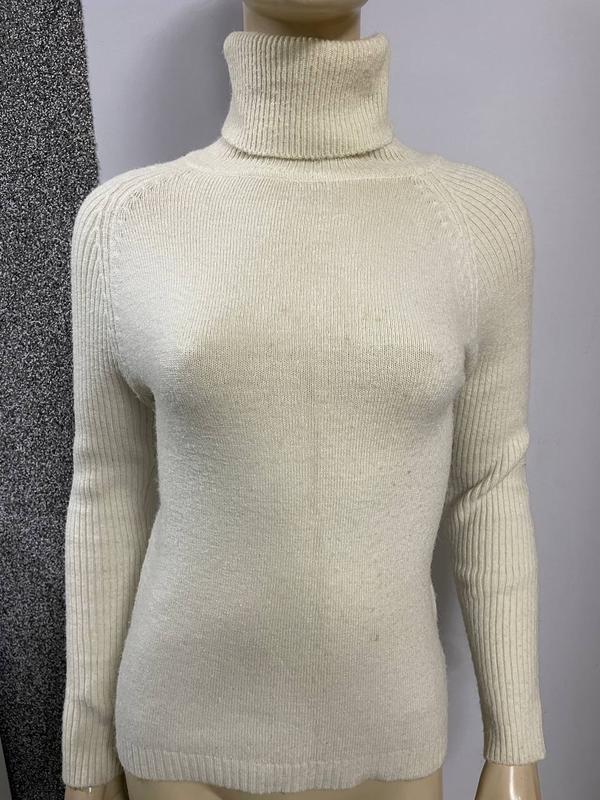 Класний светр у відмінному стані. Довжина виробу по спинці від плеча 58 см, висота горловини 21 см, напівобхват грудей 40 см, довжина рукава від пахви 44 см. Тканина тягнеться. Модель 4833Д