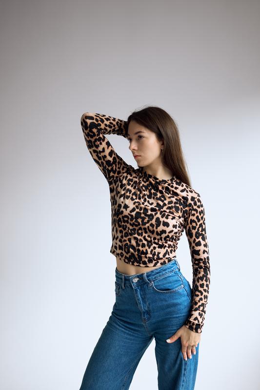 Лонгслив в трендовый принт леопард 🤎 One size - S (подходит на XS, S, M) Длина - до талии. (45 см) Длина рукава - 61 см Ткань - трикотаж масло, чрезвычайно нежная ткань, не ощущается на теле. Очень хорошо тянется.
