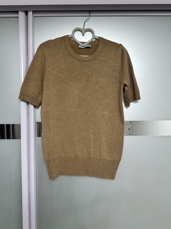 Очень стильная и приятная к телу кофта с коротким рукавом! Была в носке несколько раз. Внутренняя бирка срезана! Размер указанного M,но подходит и на s. Дефектов нет. Замеры на фото!
