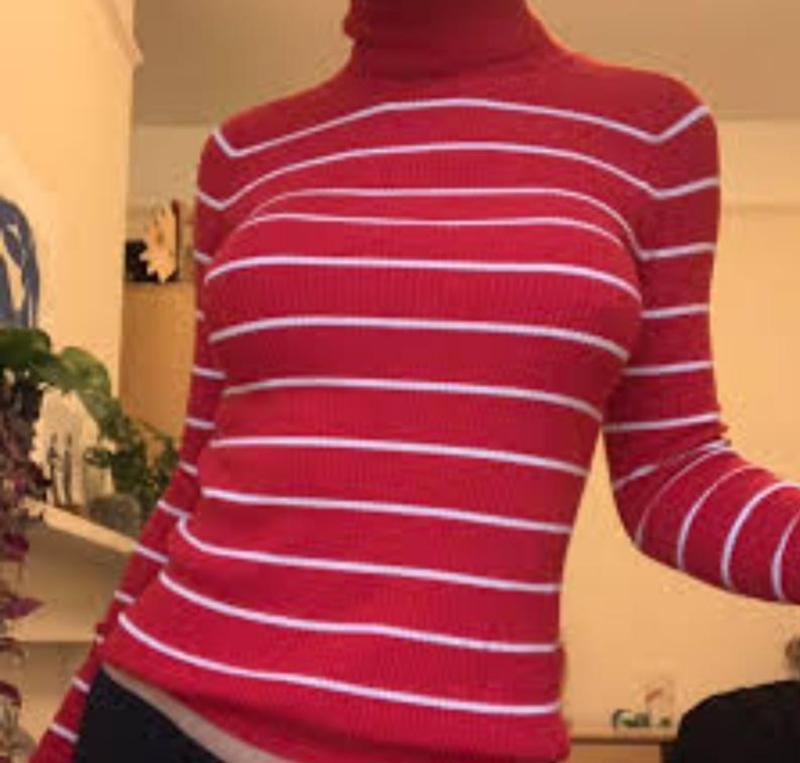 Водолазка marks & spencer красного цвета в белую полоску, на последнем фото видно как на теле. Седает отлично, очень красиво тянется, плотная, состав 🔥 Размер xs, s будет лучше всего. Что касается замеров пишите!) Торг возможен)